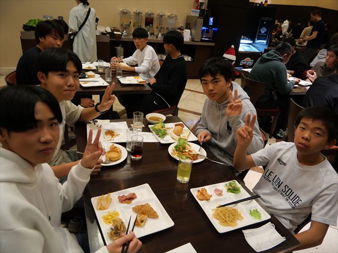 朝食はバイキング形式でそれぞれで食事を選択していきました。人気だったのは沖縄産の豚のしゃぶしゃぶとブルーシールのアイスクリーム。朝から沖縄を満喫しました。