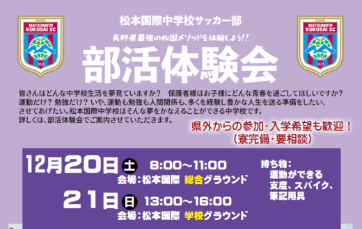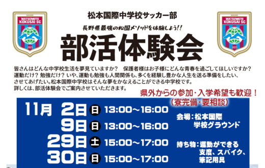 本校サッカー部では、以下の日程で部活動体験会を実施いたします。当日は、…