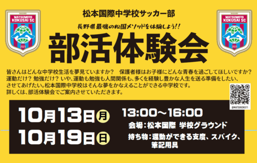 本校サッカー部では、下記の日程で部活動体験会を開催いたします。ぜひご参…