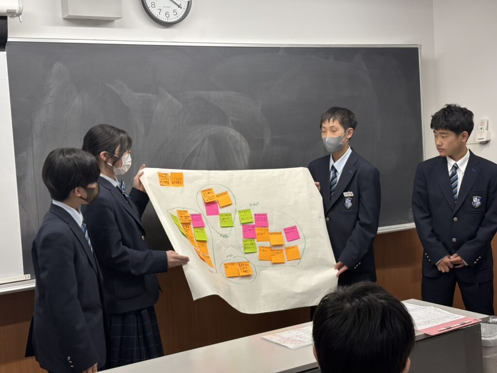 今年度は、「村井の活性化」と「茶道」をテーマに、地域と連携した探究活動を行っていきます。初回となる今回は、地域でご活躍されている方々をお招きし、村井の歴史や地域が抱える課題についてご講話いただきました。 生徒たちは、そのお話をもとに「地域をどのように発展させていくか」という視点から、「こうなったらいいのに」というアイデアをグループごとに出し合い、発表を行いました。柔軟で新しい視点の提案が多く見られ、主体的に考える姿が印象的でした。 今後は、今回の学びを出発点に、調査や体験活動を通して理解を深めながら、自分たちなりの提案へと発展させていきます。 地域とつながり、文化を受け継ぎながら、未来へとつないでいく力の育成を目指してまいります。