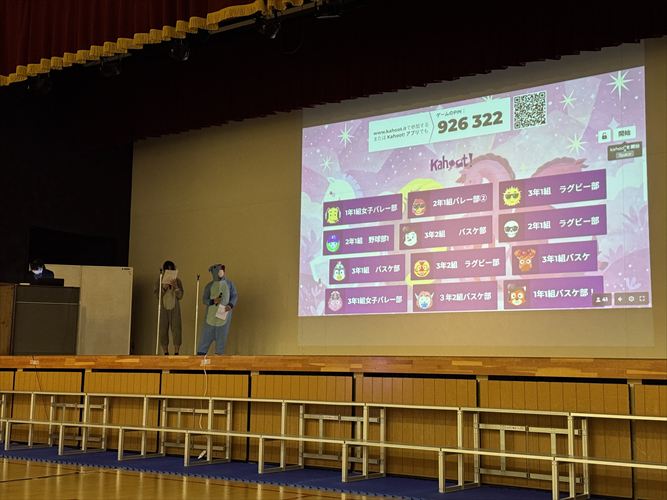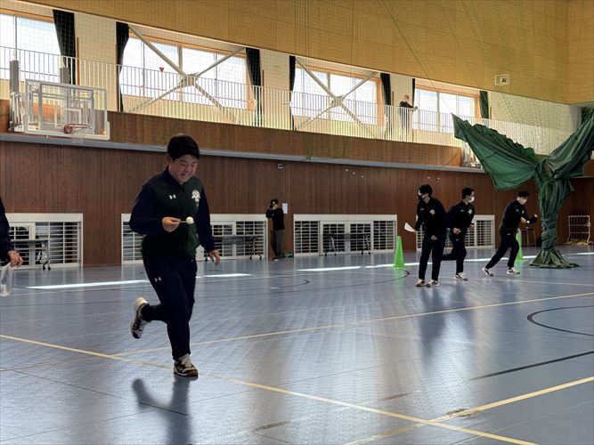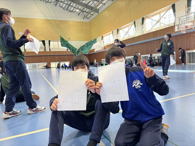 午後からは生徒会企画のレクリエーションが行われ、縦割りグループでピンポン玉運び、ジェスチャーゲーム、全員一致ゲームなど、さまざまな種目に挑戦しました。どのグループも学年を越えて協力し合い、笑顔あふれる時間となりました。