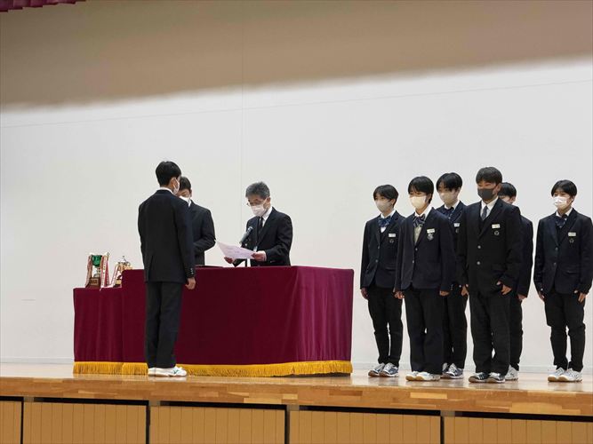 3月12日(木)、3学期終業式が行われました。表彰式では、部活動や各種検定など様々な成績を収めた生徒たちに対し、大きな拍手が贈られました。