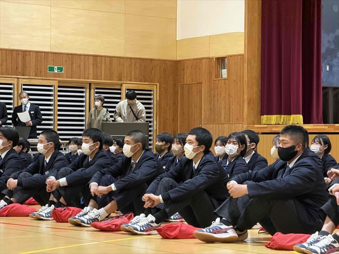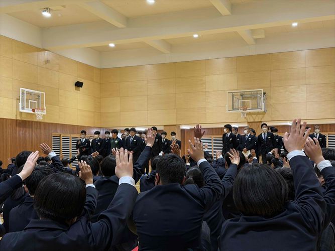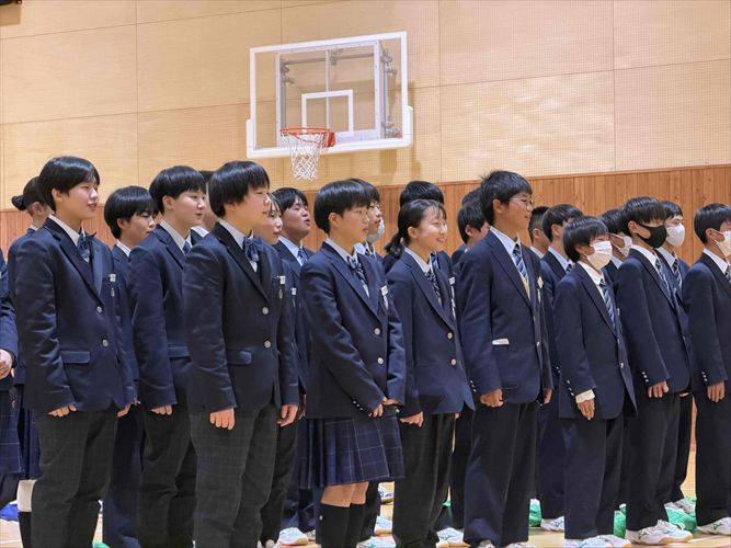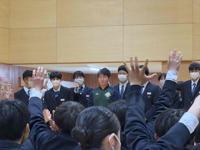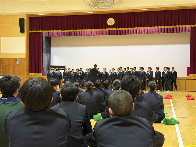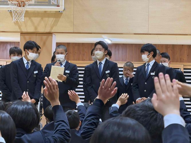 本日、3年生を送る会がメインホールにて開催されました。今までお世話になった3年生のために、1・2年生は企画・準備を進めてきました。在校生からの贈りものは、終始心温まるもので卒業目前にして3年生にとってはいい思い出になったと思います。いよいよ今週金曜日、卒業式を迎えます。